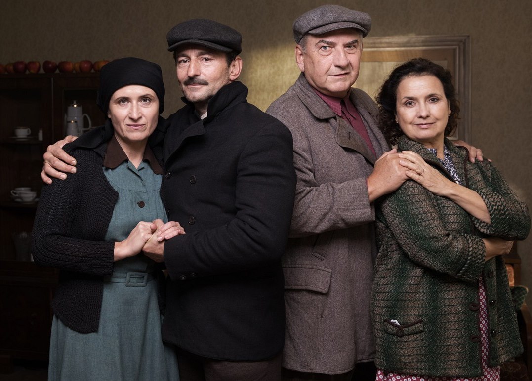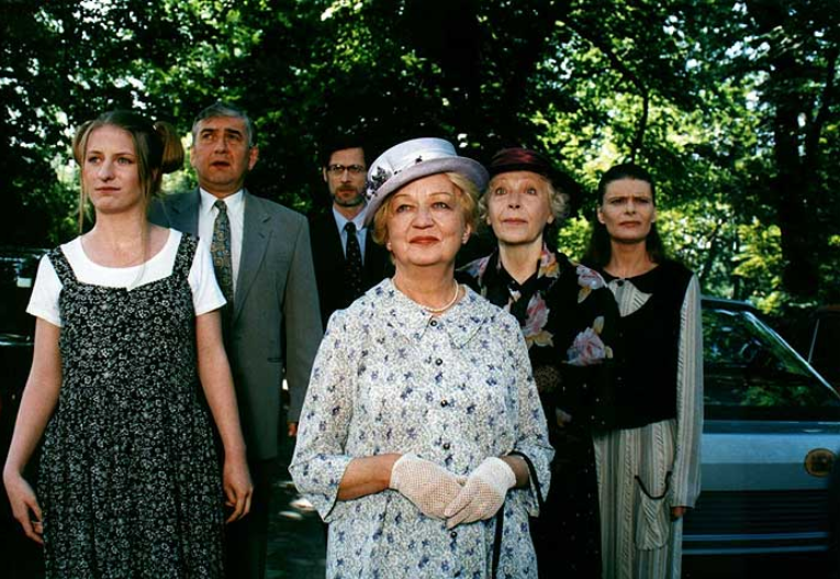 Miroslav Donutil společně s Annou Polívkovou, Janem Hartlem, Blankou Bohdanovou, Květou Fialovou a Zuzanou Bydžovskou v televizním seriálu Hotel Herbich.