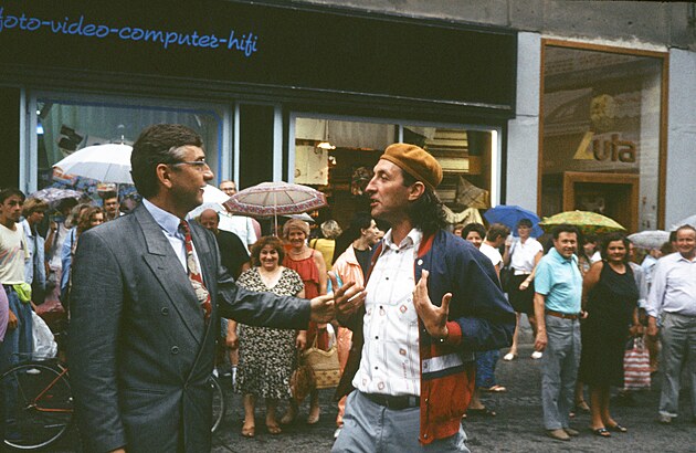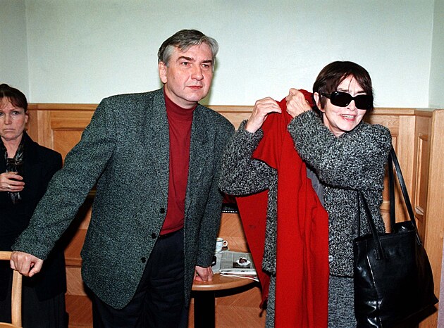 S energickou režisérkou Věrou Chytilovou spolupracoval Miroslav Donutil několikrát, snímek je z tiskové konference k filmu Pasti, pasti, pastičky.