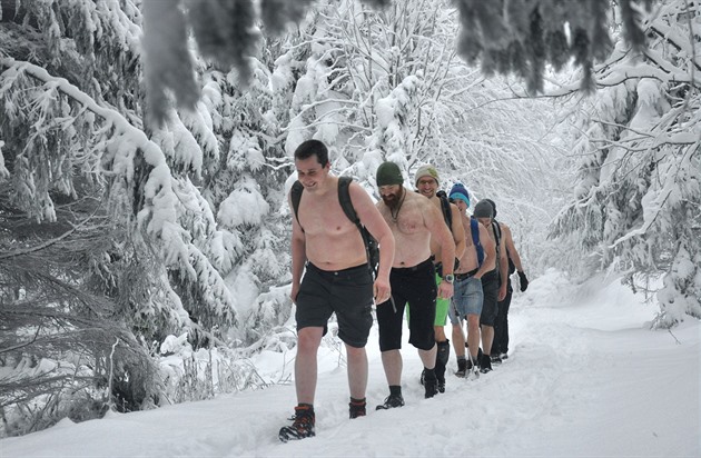 Výprava vykročila po modré značce v sobotu o desáté. Teploměr ukazoval minus čtyři stupně Celsia a čerstvý sníh dopadal na šest polonahých těl, která patřila trénovaným mužům z Liberce. Jedním z nich byl Václav Štencl, který se otužování věnuje od loňského listopadu.
