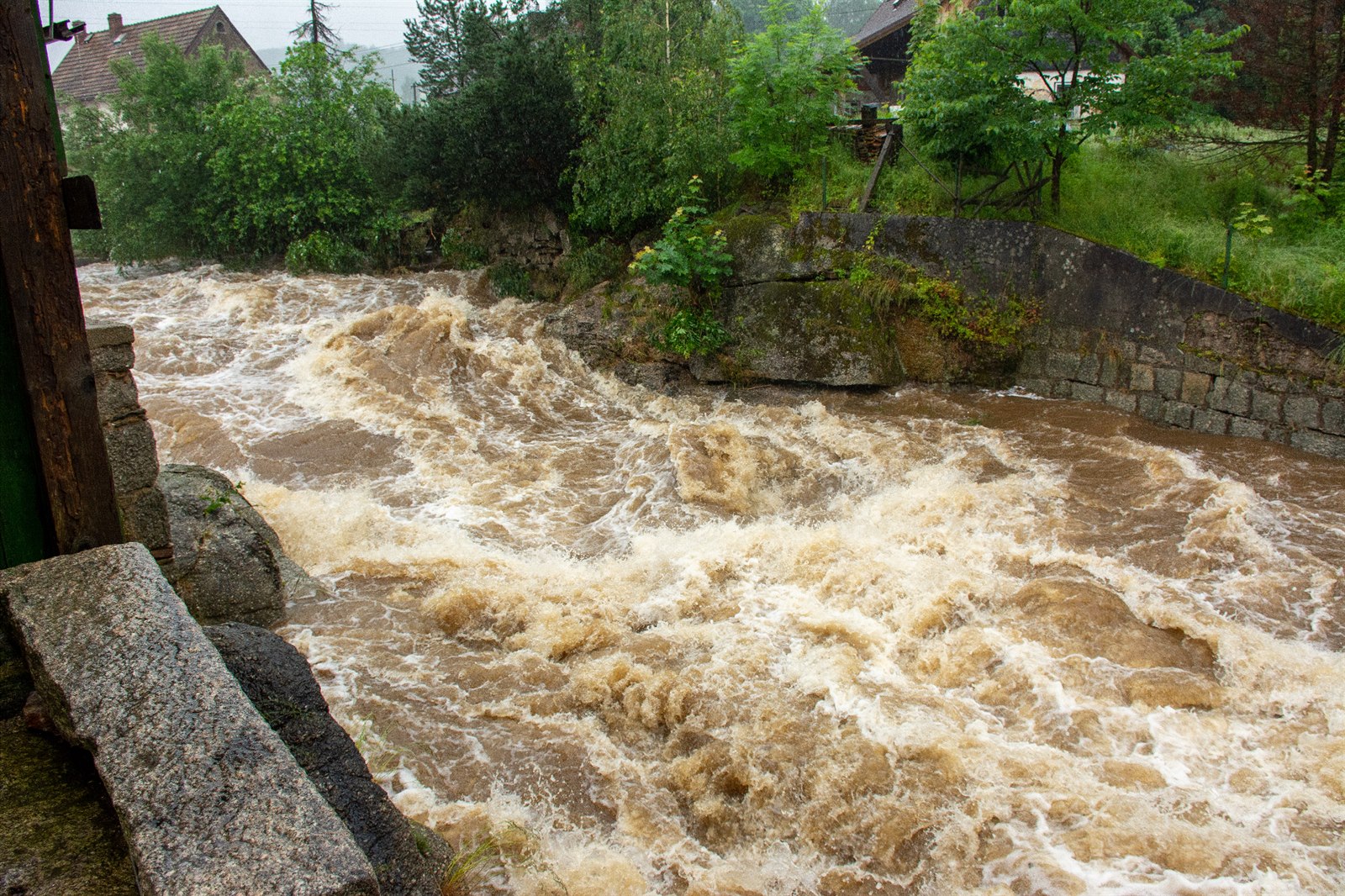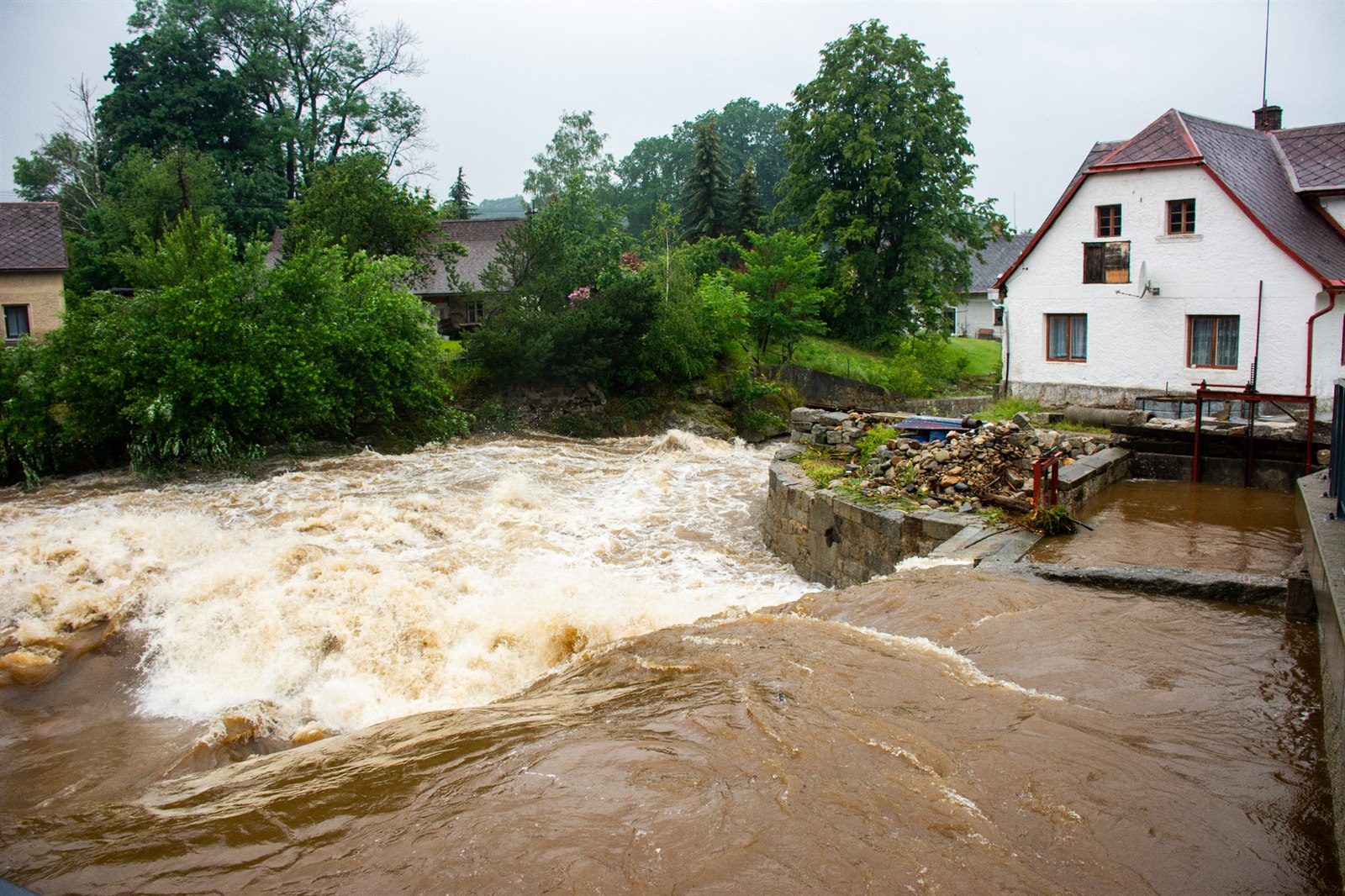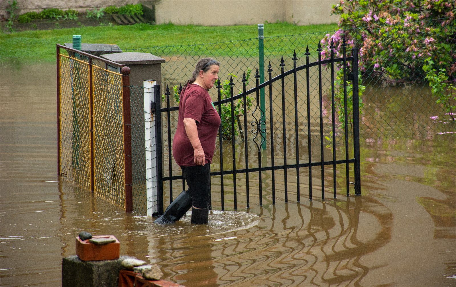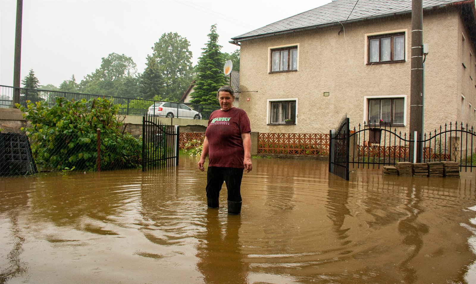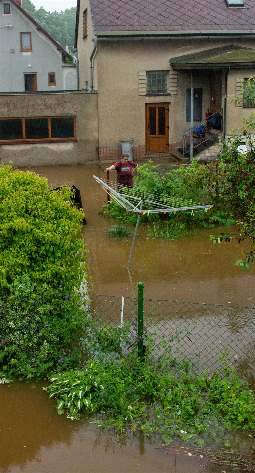 Marta Průšková z Raspenavy má zaplavenou zahradu, dvůr i garáž. Je to už třetí povodeň, kterou zažila.