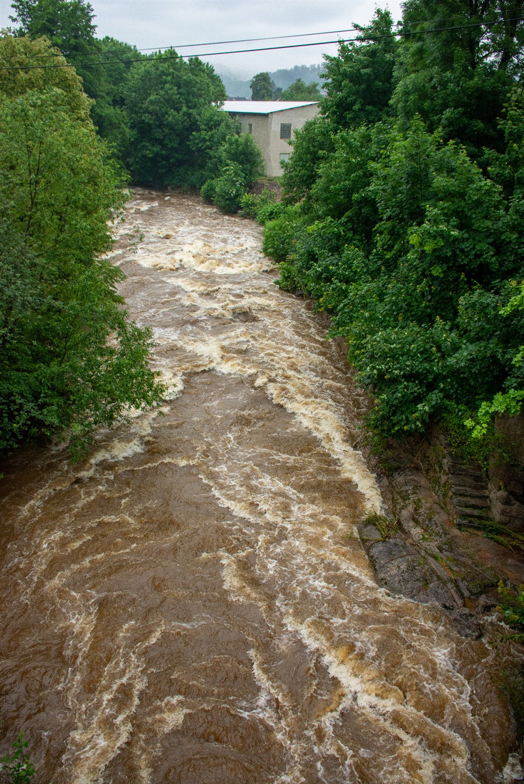 Lidé s obavami vyhlížejí stoupající řeku Smědou ve Frýdlantu.
