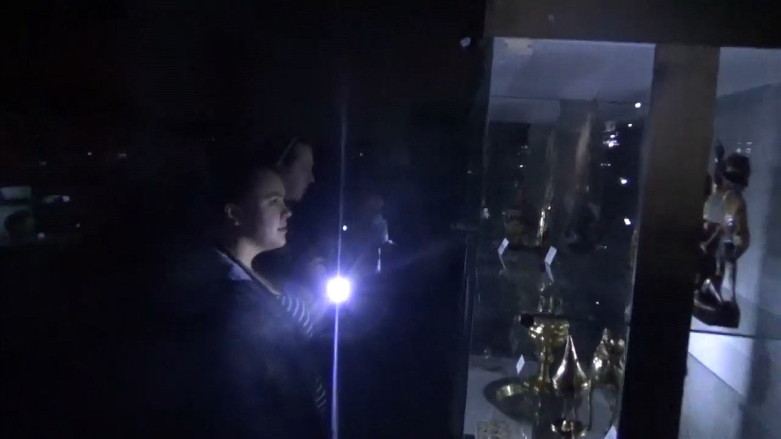Kužele baterek olizovaly klenutý strop či tapiserie, neboť veškeré světelné zdroje historické budovy ponechali pracovníci muzea zhasnuté.
