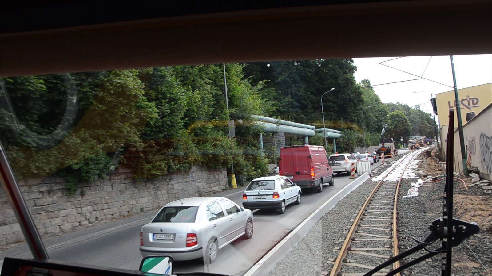 Cestujícím neunikne ani obří nová opěrná zeď mezi zastávkami Měnírna a Brandl, která stavitele pořádně potrápila.