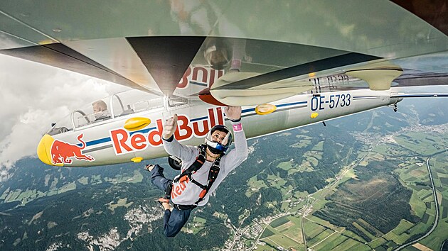Cesta přes letadlo zabrala 31letému lezci necelou minutu. Pak se Domen Škofic odlepil od křídla a do prázdného prostoru skočil backflipem s padákem na zádech. Devět kamer zachytilo každý detail pohybu.