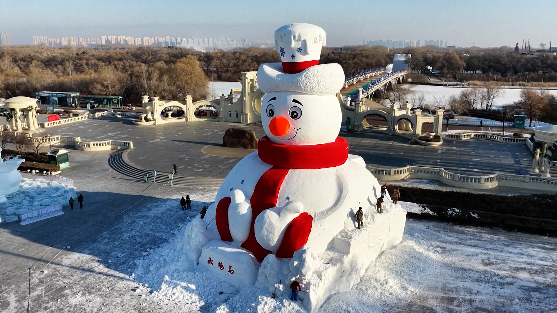 Je vysoký dvacet metrů a vznikl zhruba ze čtyř tisíc metrů krychlových sněhu. Mr. Snowman, sněhulák v nadživotní velikosti, byl dokončen a odhalen devátého prosince a okamžitě se stal středem pozornosti Mezinárodní výstavy sněhových soch na Sun Islandu v čínském Charbinu.