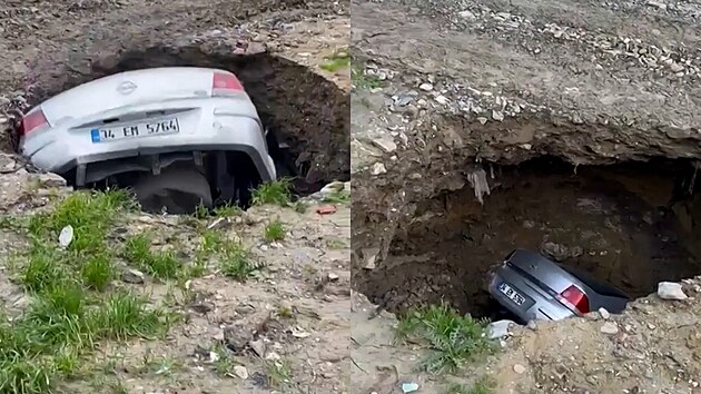 Auto stálo na prázdném pozemku u potoka Haramidere, který lidé běžně využívají k parkování. Najednou se začala zemina propadat a auto se postupně sunulo do útrob země.