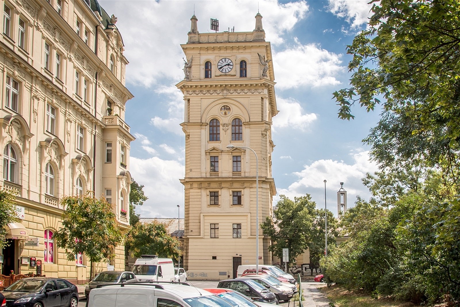 Jde o vodárenskou věž z roku 1882, která byla po vyřazení z provozu v 60. letech minulého století přestavěna na bytové jednotky a poslední patro využívá T-Mobile.