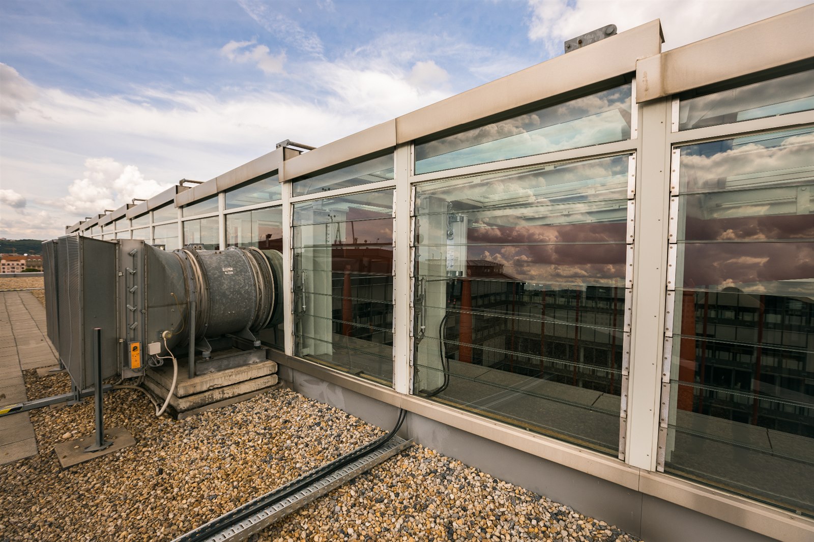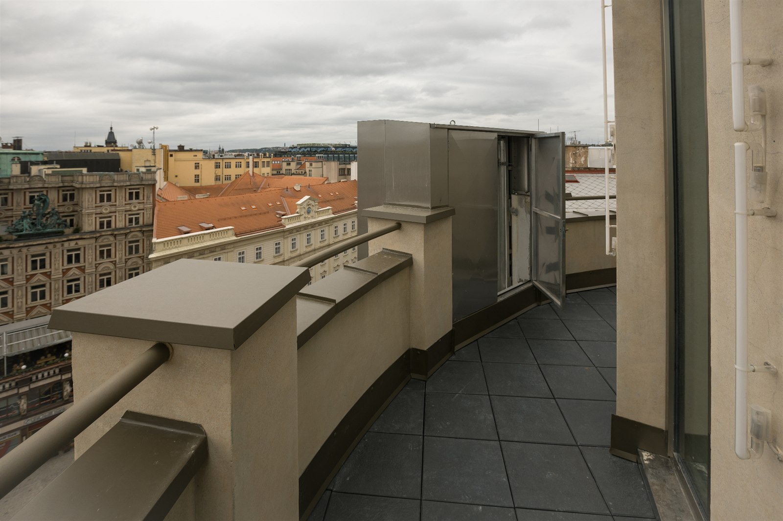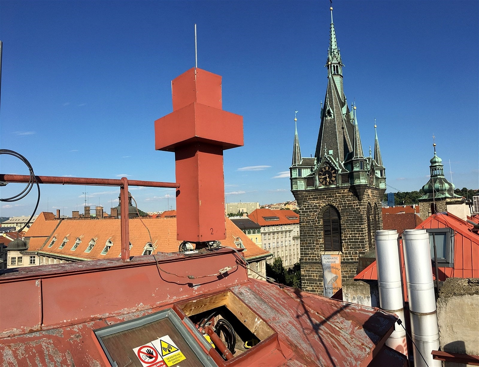 Nejlépe viditelná je ze střechy, takto ji ovšem vidí vesměs jen servisní technici operátora, respektive správa budovy.
