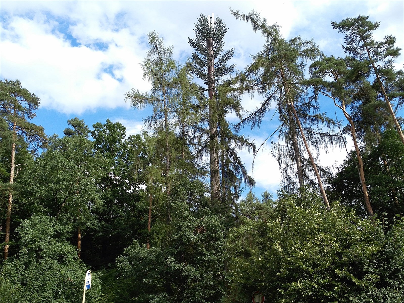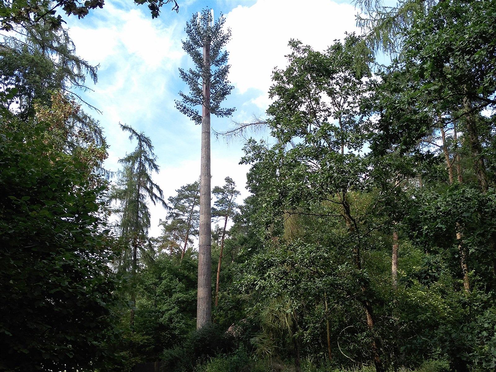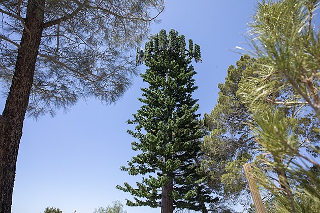 Další unikát operátorů: falešná borovice. Tímto elegantním řešením, které téměř dokonale splývá s okolím, se chlubí T-Mobile. Takto řešené vysílače, sdílené s O2, se nacházejí ve více lokalitách.