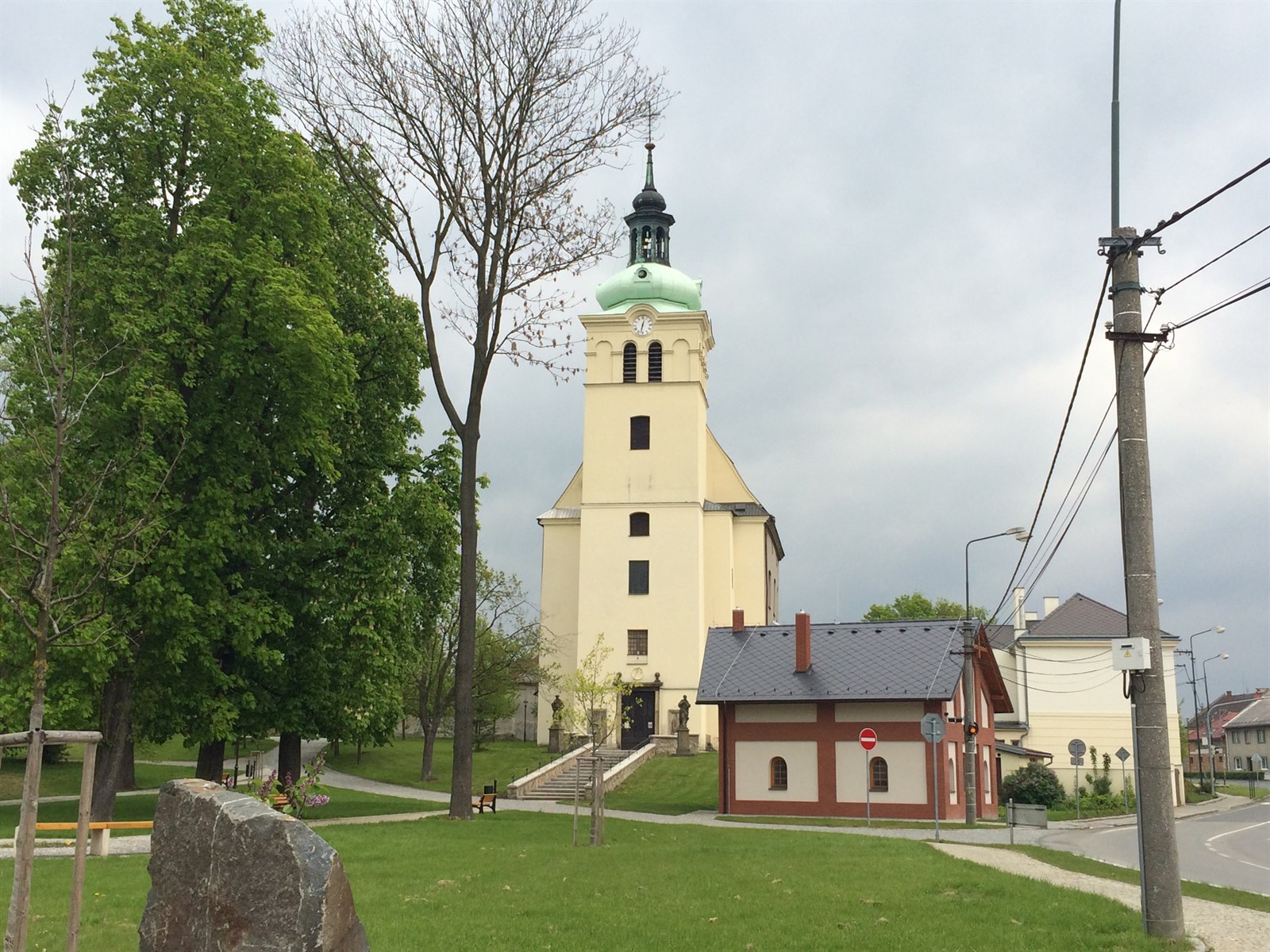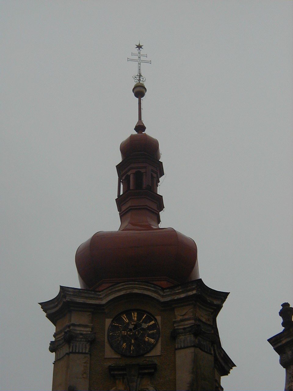…tak na věži přiléhajícího kostela sv. Michala jsou antény Vodafonu instalované „natvrdo“. Maskují se alespoň díky shodnému nátěru.