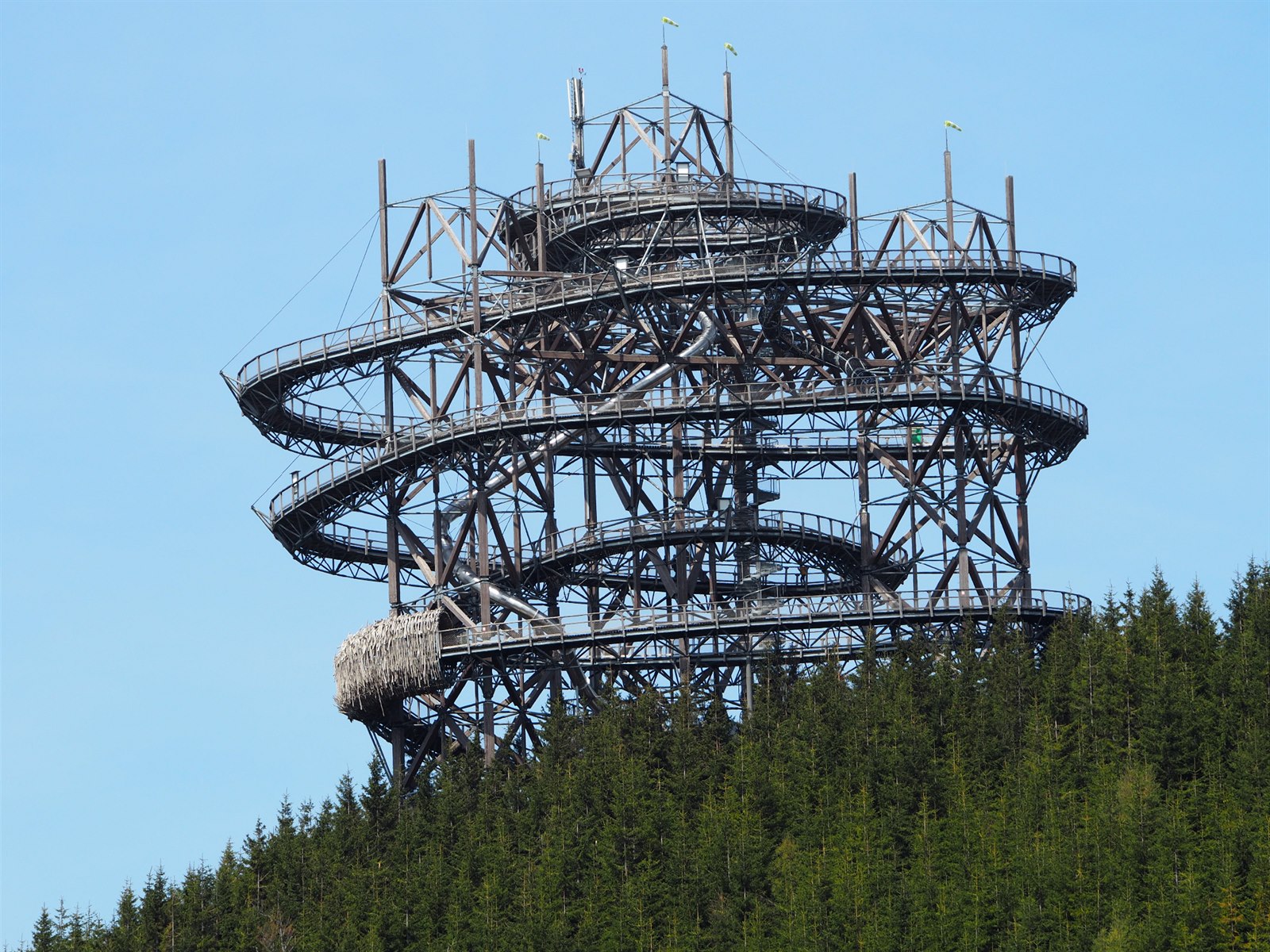 Nacházejí se až na jeho vrcholu a působí jako jeho součást. Nevzhledná kabeláž je přitom vedena vnitřkem konstrukce.