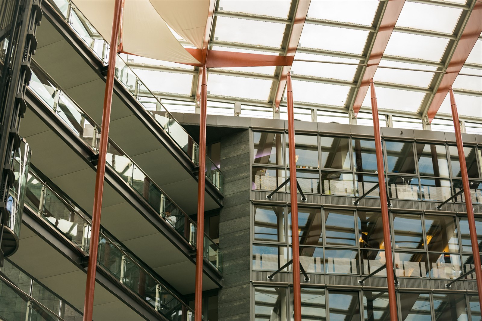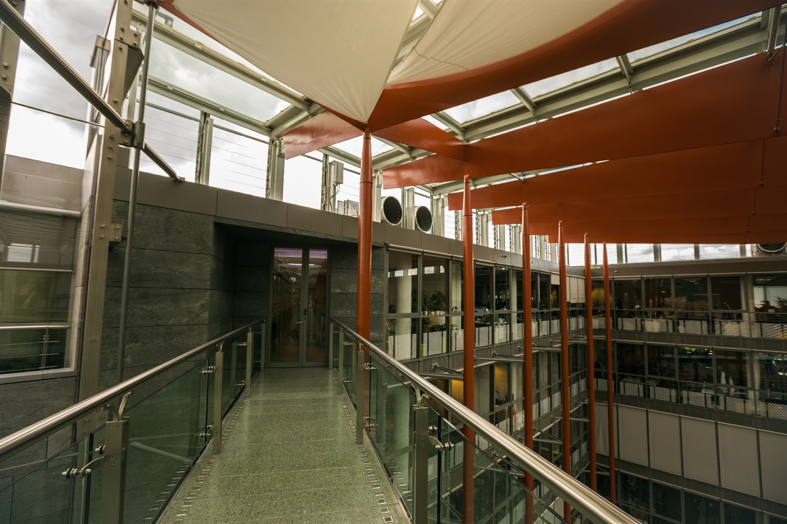 Abyste zdejší anténu Vodafonu sloužící i k pokrytí sousedních budov zahlédli, pak musíte zvednout pohled k prosklené střeše dvorany.