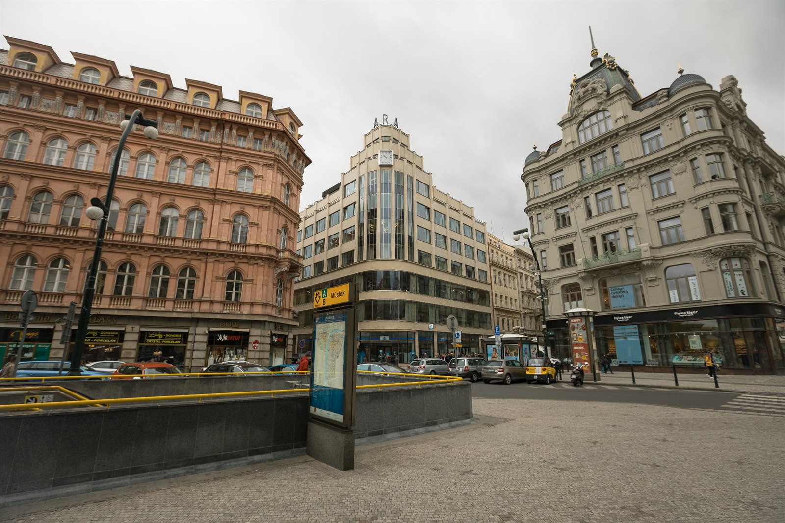 Na tomto snímku se díváme na palác ARA na rohu ulic Perlová a 28. října, jehož dominantou jsou kromě bohatého prosklení i hodiny. Proč je zmiňujeme?