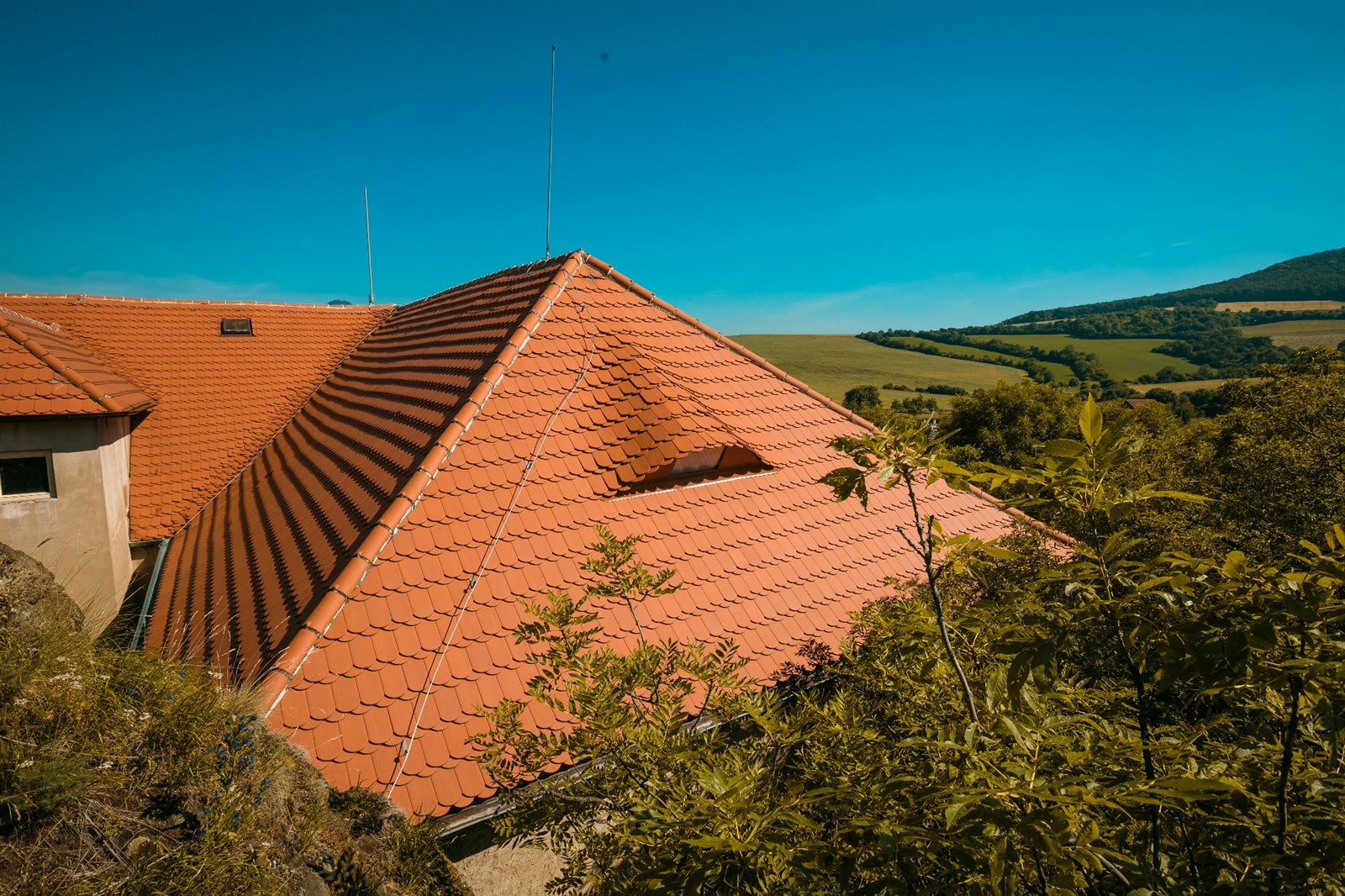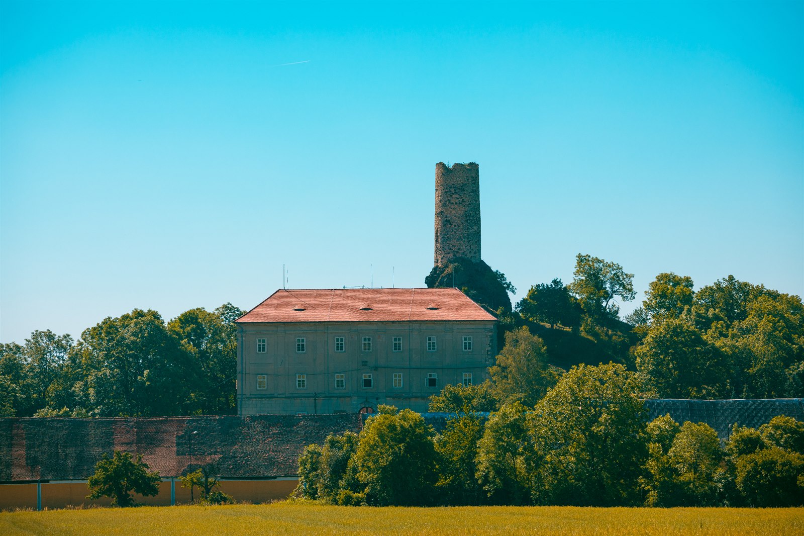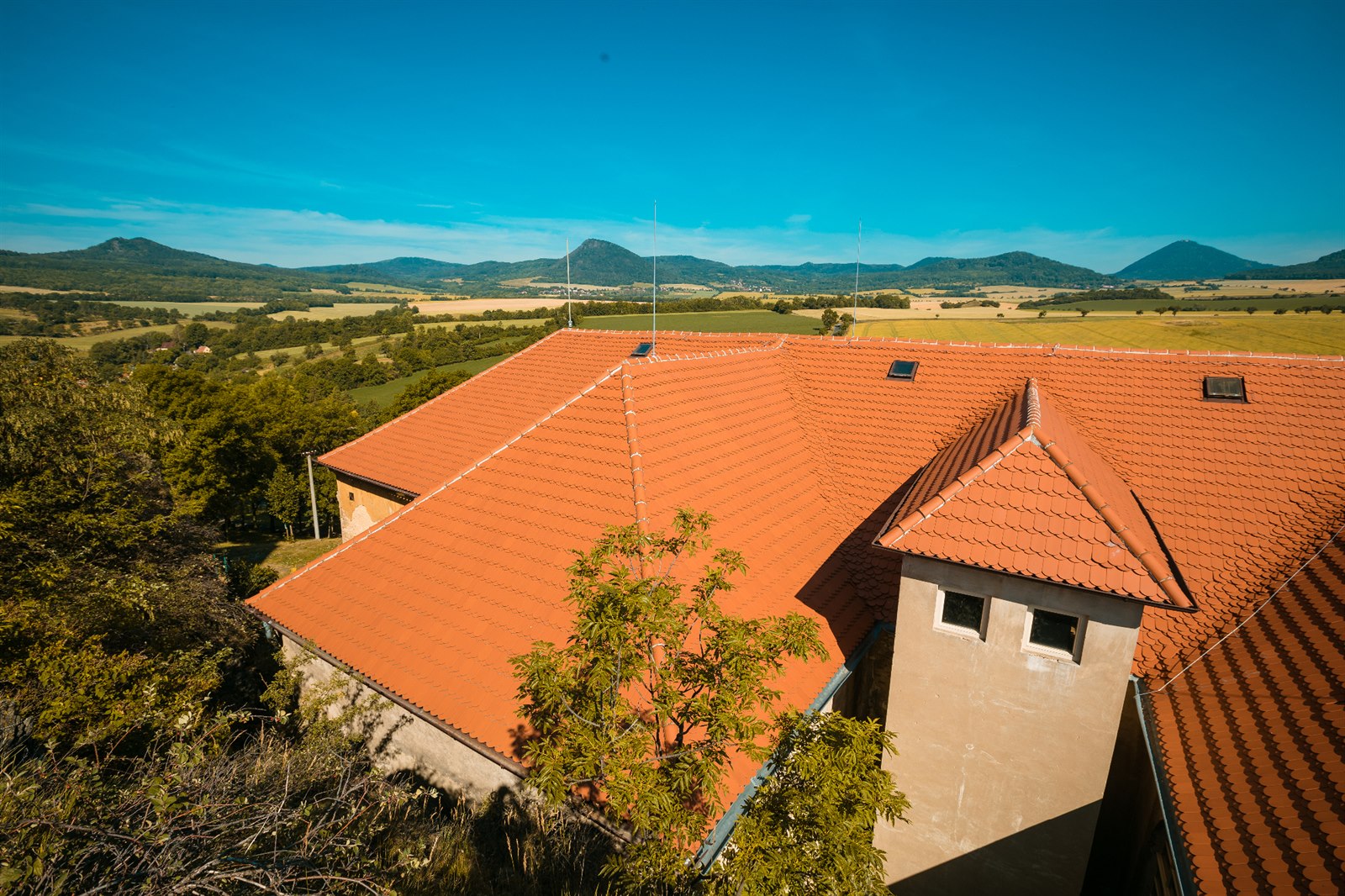 Výhodou městské zástavby je, že nabízí řadu možností, jak se vypořádat s požadavky památkářů. Mimo města je to ovšem horší, málokterá obec si nechá ve svém katastru postavit nevzhlednou kovovou konstrukci coby nosič operátorských antén. A tak se pro jejich osazení využívají i historické objekty, jako například zámek Skalka.
