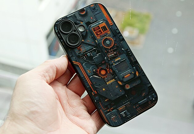 Zde, u dalšího krytu za zhruba stokorunu, je možné vidět, že s designem už často pomáhá i umělá inteligence.