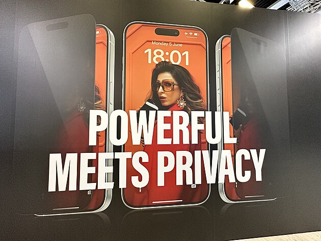 Když jsme dorazili na stánek značky Panzer Glass, překvapila nás jedna věc. Na panelech s grafikou iPhonů byly tyto mobily ukázané s růžovou barvou. Jenže žádná taková v aktuální sestavě mobilů od Applu nefiguruje. Při bližším zkoumání grafiky nám však zároveň i došlo, že mobily na grafice už ani nemají tradiční posuvník pro přepínání tichého režimu, nýbrž multifunkční tlačítko navíc. A už to bylo jasné: takto mají vypadat zatím nepředstavené iPhony 15 a 15 Pro, které oficiálně uvidíme až 12. září.