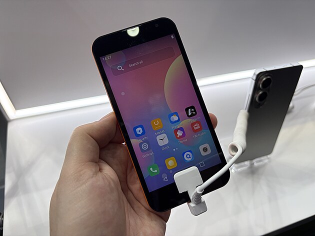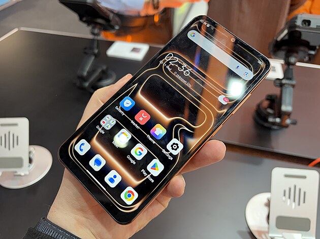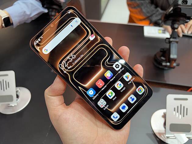 I Coolpad ale ve skutečnosti ještě nezklamal tolik jako další napodobenina na stánku výrobce Fossibot. Ačkoliv ji výrobce ukazoval, šlo o maketu.