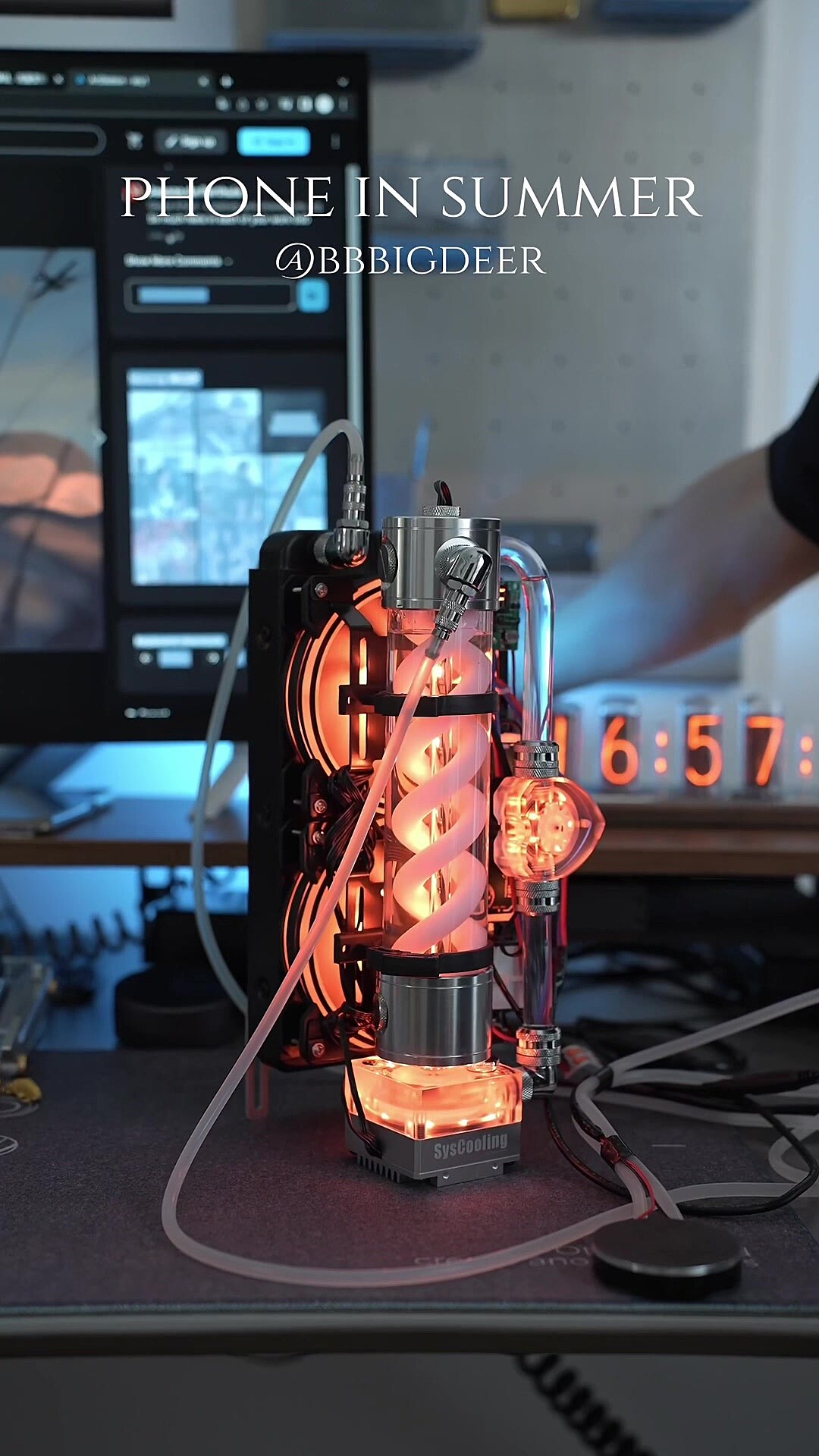 Na první pohled může působit jako zmenšenina nějaké části rafinérie či počin vyznavače steampunku, ve skutečnosti jde však o důmyslný chladicí systém propojený s magnetickou nabíječkou MagSafe pro iPhony (od modelu 12 výše). Jeho autorem je průmyslový designér, který na internetu vystupuje pod pseudonymem bbbigdeer.