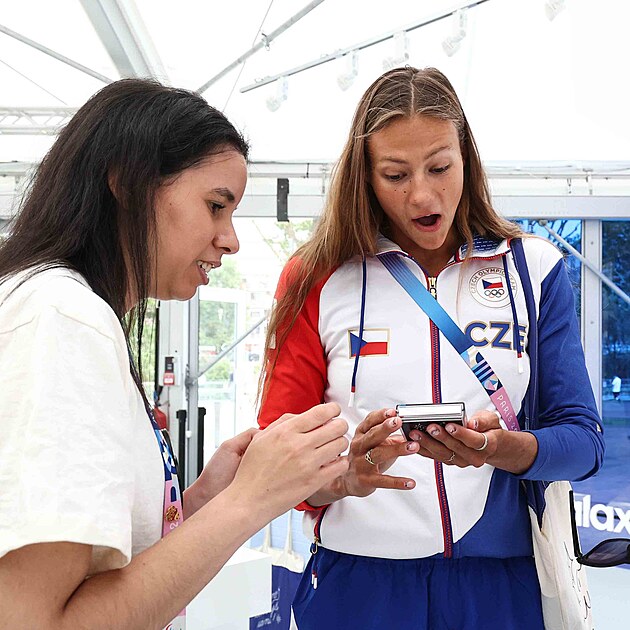 Jedině z druhé ruky si může běžný zákazník pořídit olympijský smartphone. Ten dodává tradiční partner Samsung a tentokrát padla volba na véčko. S telefonem mají pódiová selfíčka i oba čeští medailisté: zlatá Zuzana Maděrová a stříbrný Metoděj Jílek.