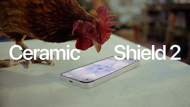 Zůstává například i provedení a rozlišení displeje: novinka je tak jediný aktuální iPhone s výřezem v displeji namísto Dynamic Islandu, který mají všechny ostatní modely značky. Ovšem krycím sklem displeje je Ceramic Shield 2, které slibuje oproti předchozí generaci trojnásobně lepší odolnost vůči poškrábání a zároveň zmírňuje odlesky.