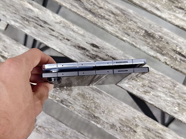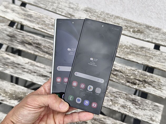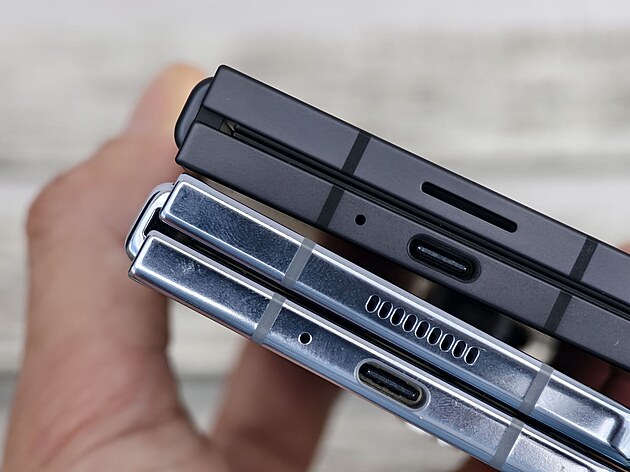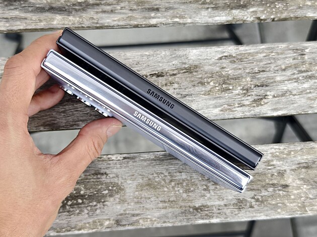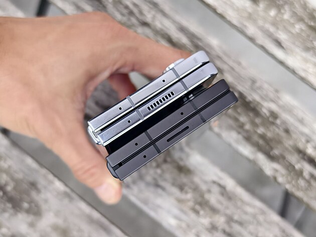 Vidět je to v případě, že telefony položíme na sebe rýhou kloubu slícovanou k sobě. Pak Z Fold 6 do šířky mírně předchozí Z Fold 5 přesahuje. V zavřeném stavu má Z Fold 6 na šířku 68,1 mm, zatímco předchozí generace 67,1 mm, v otevřeném to znamená 132,6 mm oproti 129,9 mm.
