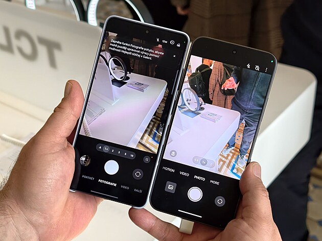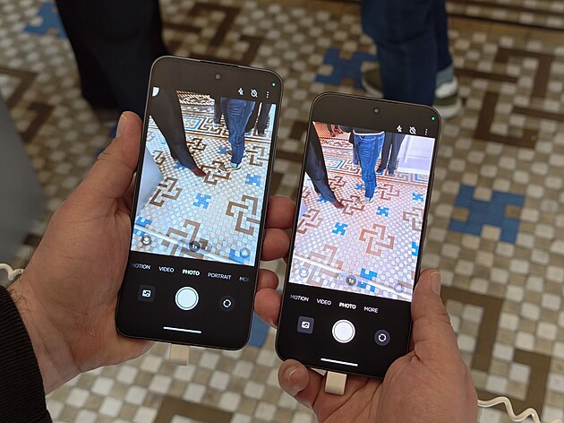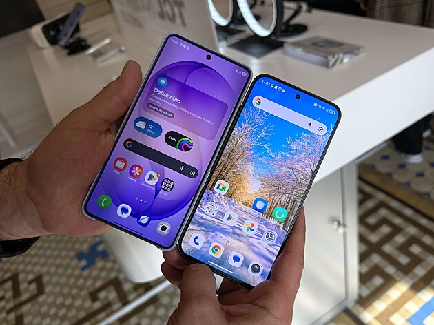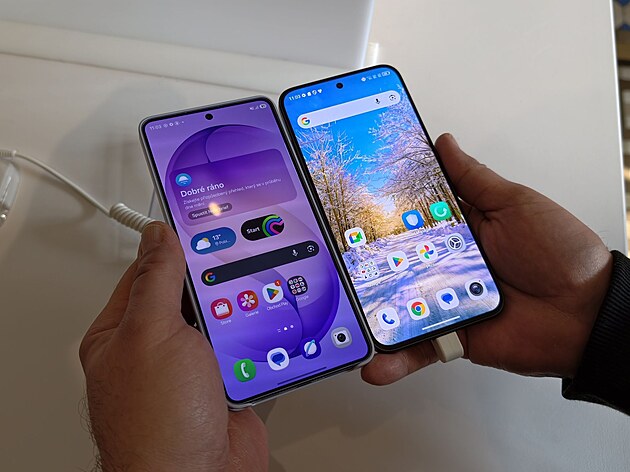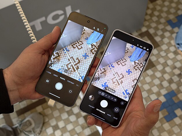 A ještě jedno porovnání: vlevo je sériový smartrphone TCL Nxtpaper 70 Pro s IPS-LCD Nxtpaper panelem, vpravo pak prototyp s novým OLED Nxtpaper panelem. Rozdíl v jasu je rozhodně výrazný.