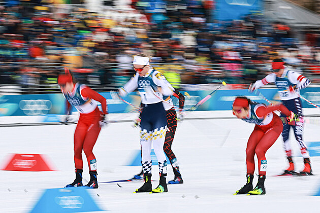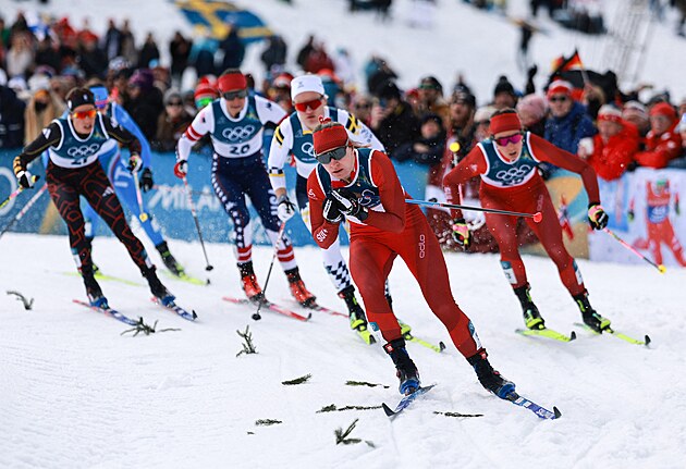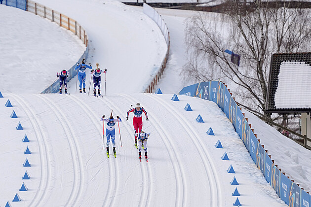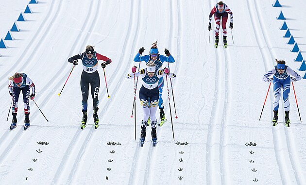 Kateřina Janatová (druhá zleva) v akci během čtvrtfinále sprintu žen. (10. února 2026)