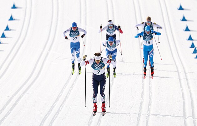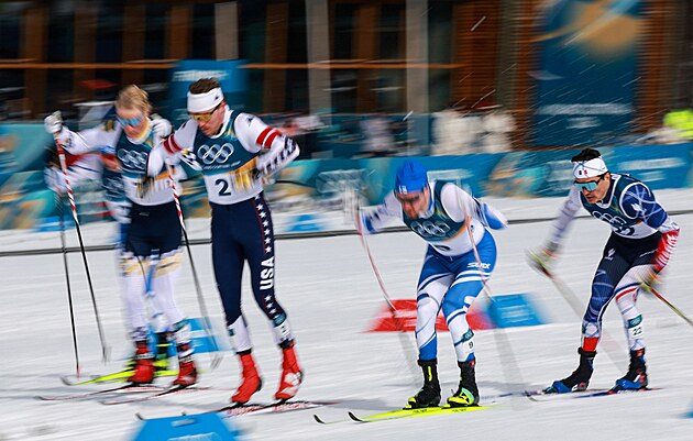 Ben Ogden ze Spojených států v akci během čtvrtfinále sprintu klasicky mužů. (10. února 2026)