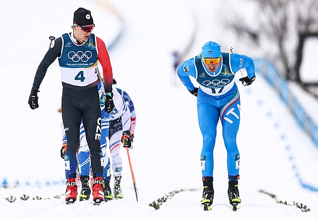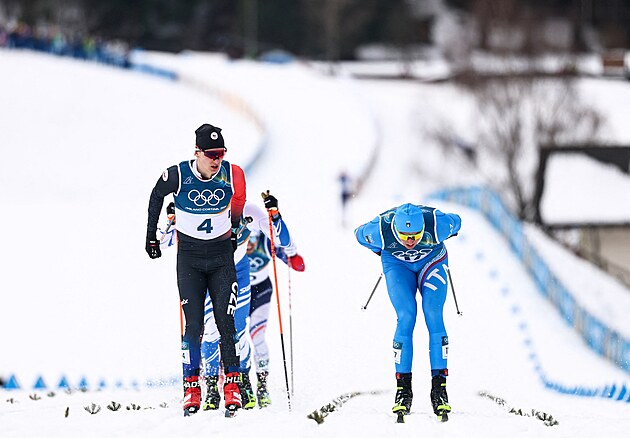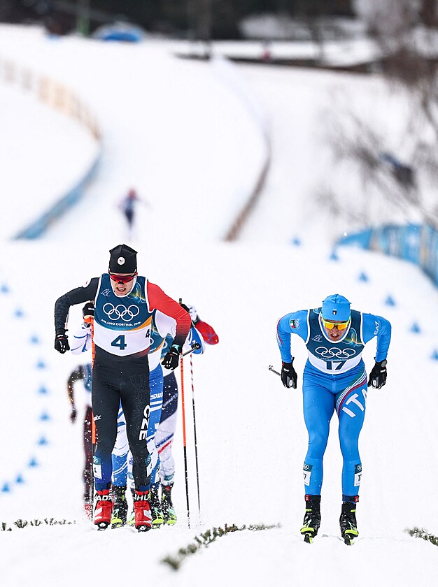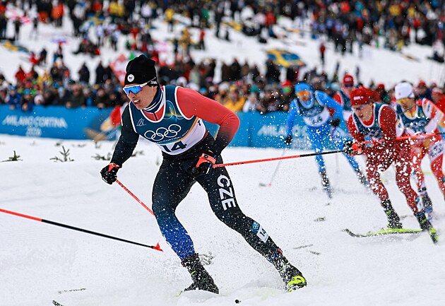 Ondřej Černý (14) v akci během čtvrtfinále sprintu klasicky. (10. února 2026)