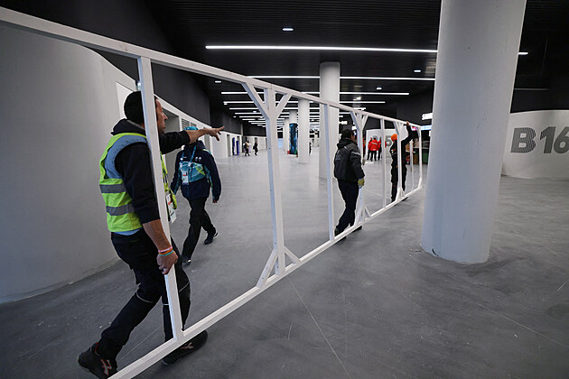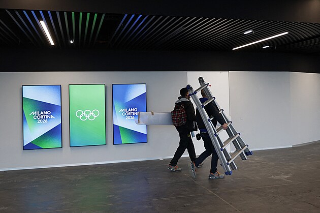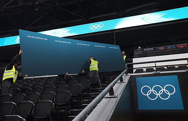 Zapojit osvětlení, vymalovat, strhnout pásky, odvézt krabice. Dělníci v milánské areně mají před startem her stále napilno.
