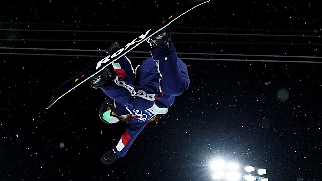 Se čtrnáctkou na dresu. S ortézou na rameni schovanou pod bundou, černými copánky a snowboardem značky Roxy předvedla technicky jízdu z úplně jiného vesmíru.