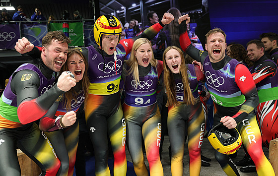 Německá šestice zvítězila s náskokem 542 tisícin sekundy před Rakouskem a ovládla i čtvrtou štafetu od její premiéry na olympiádě v roce 2014. Domácí Itálie na třetí příčce zaostala o 849 tisícin.