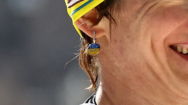 Pětatřicetiletá Ukrajinka v sobotu ovládla biatlonový sprint, při kterém měla na sobě zmíněné náušnice. Od Mezinárodního paralympijského výboru dostala varování, že podle pravidel není takový nápis kvůli politickému heslu povolen.