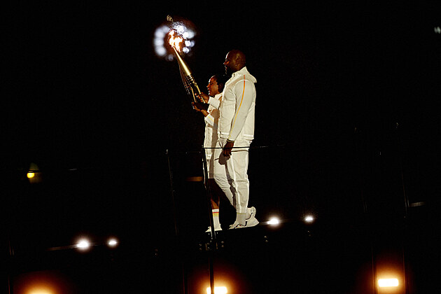 Fiktivní oheň během zahájení „zažehli“ ikoničtí francouzští sportovci – trojnásobná olympijská vítězka atletka Marie-José Pérecová a judista Teddy Riner. Ten v Paříži přidal další dvě zlata a je dokonce pětinásobným šampionem.