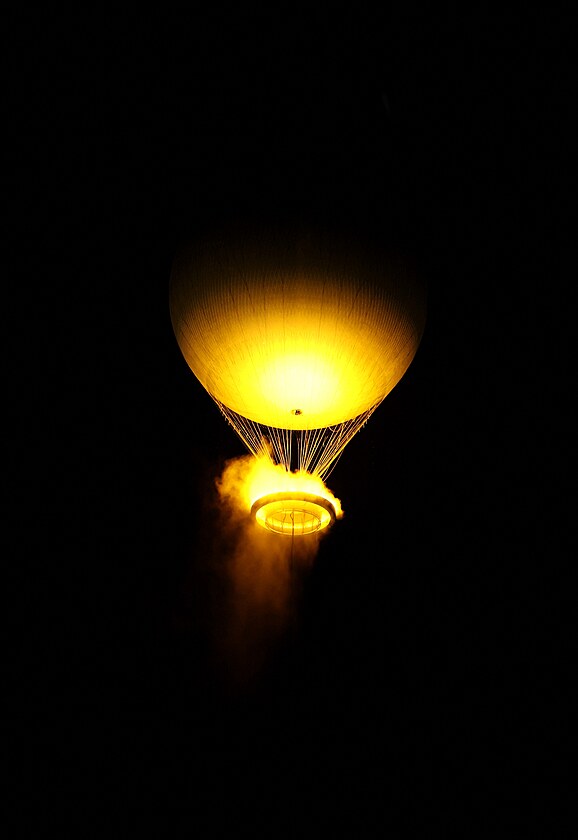 Obdivované těleso ale klame. Uvnitř ve skutečnosti žádný oheň není. V koši pod balonem se jen snoubí mlžný oblak s paprsky světla.