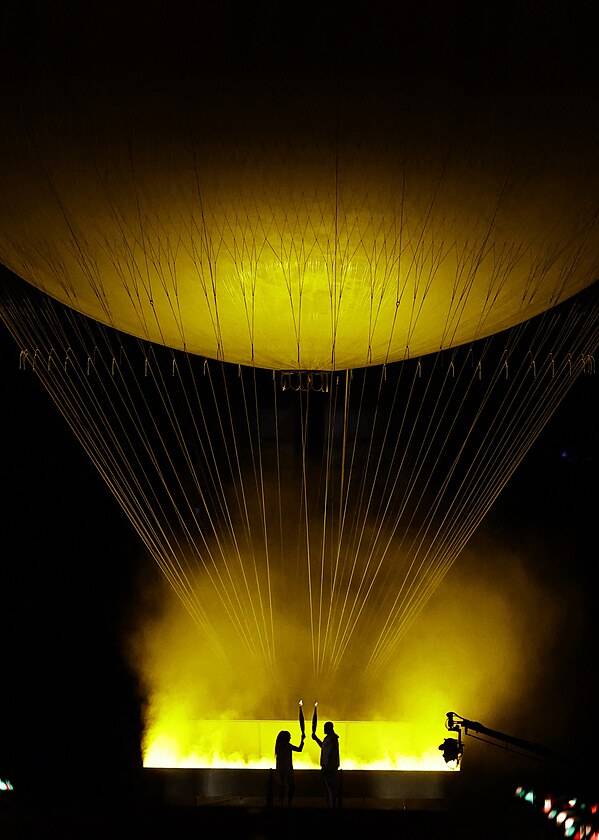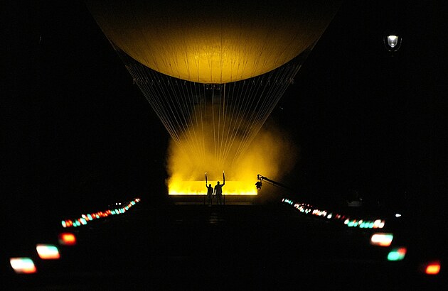 Sedmimetrový prstenec číše balonu poprvé na očích celému světu. Atletka Marie-José Pérecová a judista Teddy Riner symbolicky zahájili 33. letní olympijské hry.
