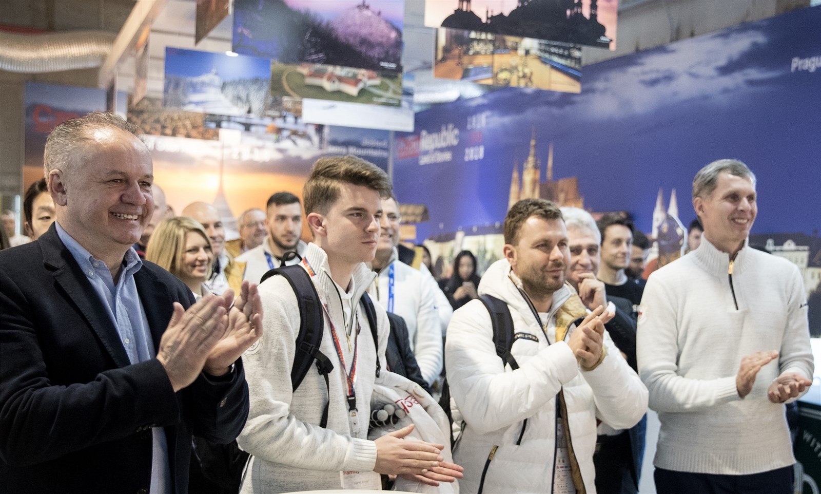 Zatímco Miloš Zeman se omluvil a do Koreje se vůbec nevydal, Kiska podobně jako na letních hrách v Riu přijel pozdravit českou výpravu.