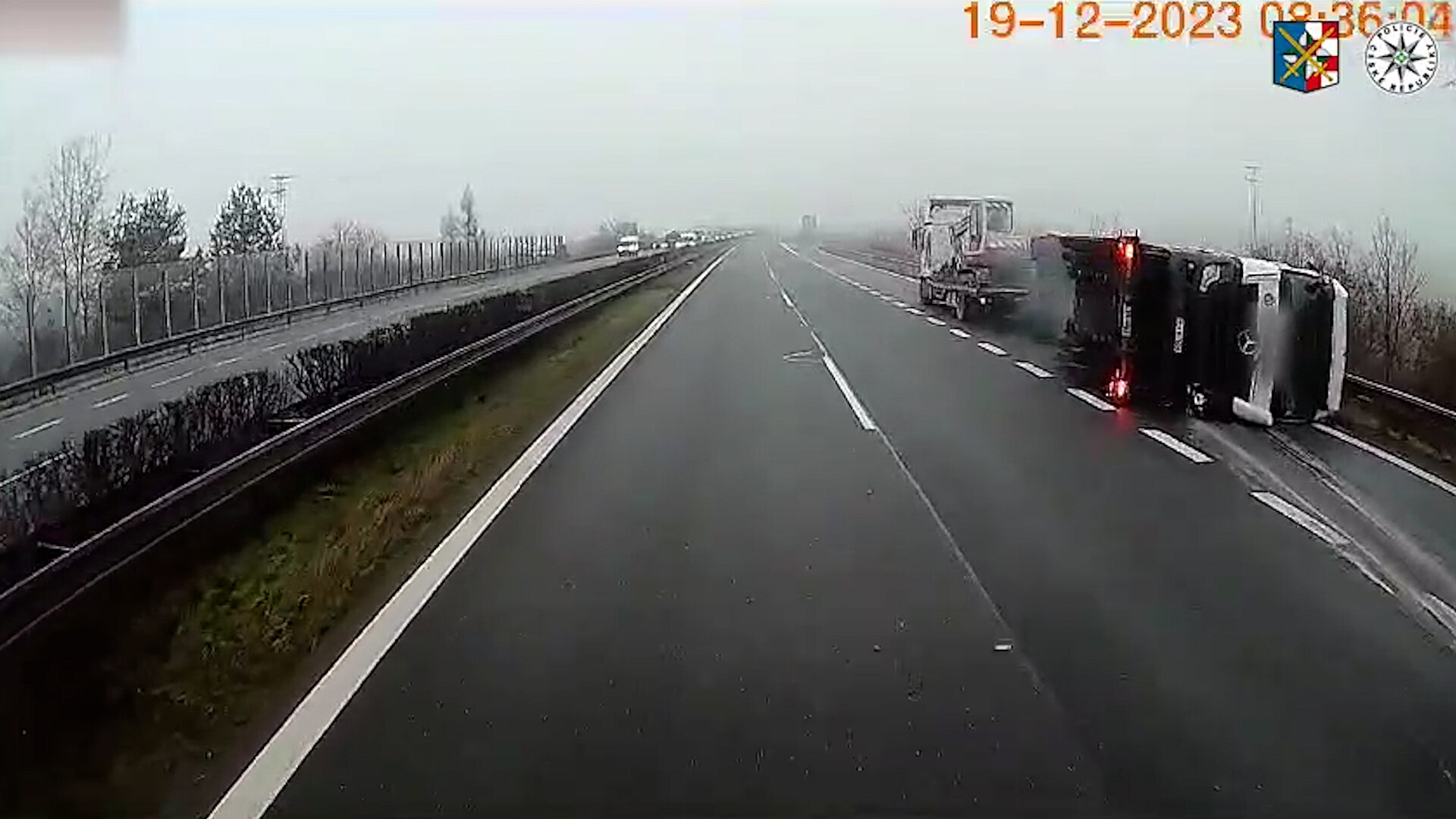 „Za jízdy se mu převrátil přívěs, na kterém měl naložen tahač a osobní vozidlo,“ sdělil krajský policejní mluvčí Libor Hejtman.