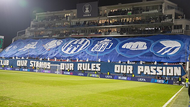 Prezentace olomouckých fanoušků v utkání play off Konferenční ligy.