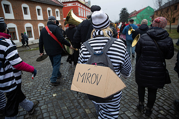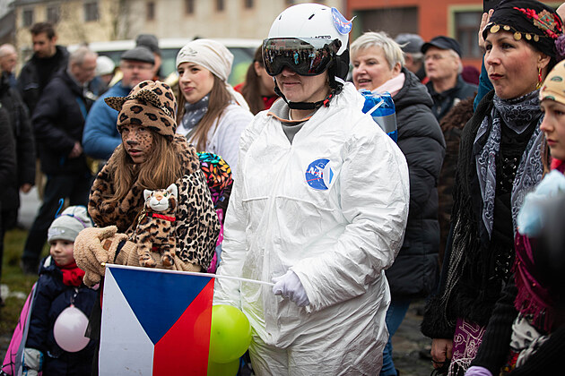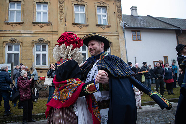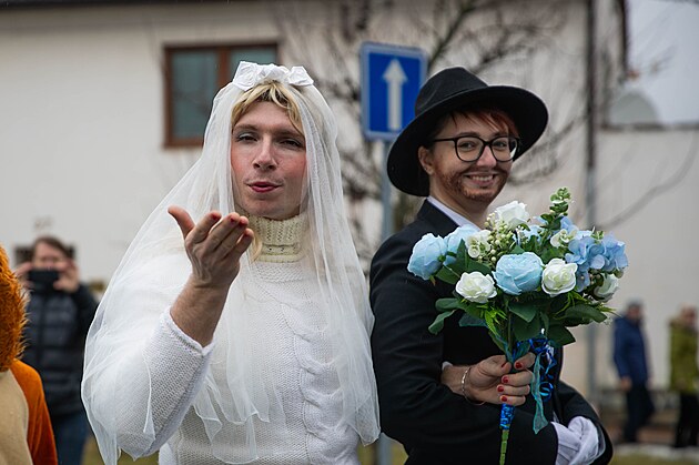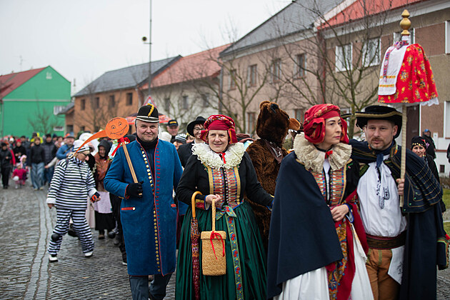 Průvod plný krojovaných účastníků i rozličných masek se sešel v sobotu v Hanáckém muzeu v přírodě v Příkazích na Olomoucku k oslavě masopustu.
