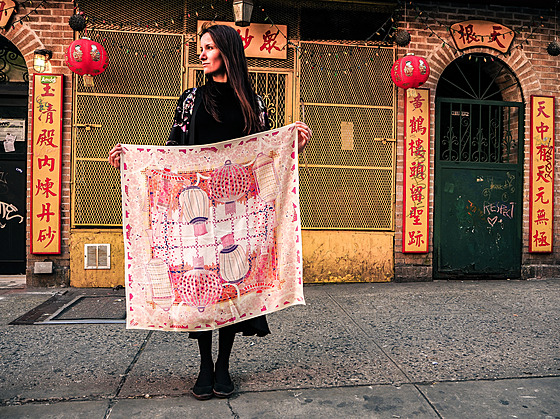 Následně dodám barvy a když je návrh hotový, putuje do Itálie, kde se přenáší na hedvábí. Hotovou látku pak stříháme, žehlíme, obšíváme a ukládáme do krabiček. Tato část procesu už probíhá v Praze. Chci především, aby se mé šátky nosily, a tak velmi trvám na kvalitní a pečlivé výrobě na jejímž konci je šátek, který vydrží po generace.