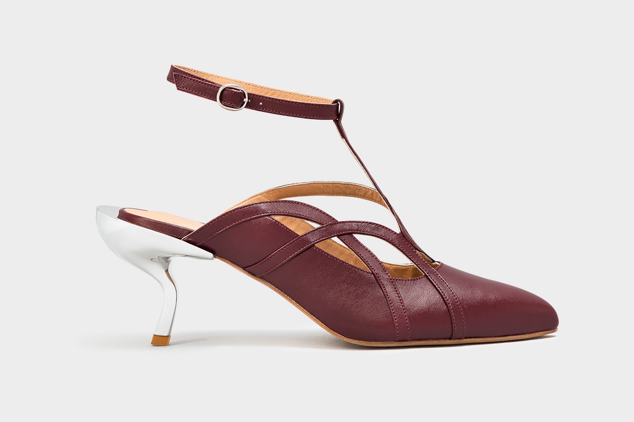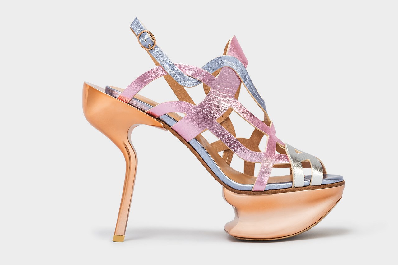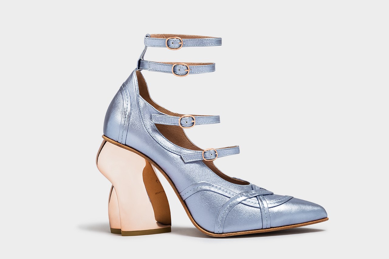 Modelů obsahuje capsulová kolekce sedm. Tomuto, který nese název Gigi, dominuje metalický efekt, úzké pásky a mohutný zlatý podpatek. K dostání je také v černé matné alternativě se stříbrným podpatkem.