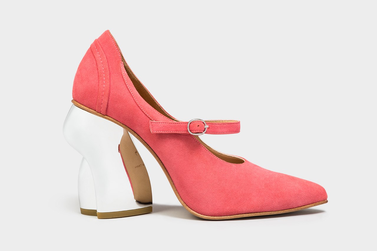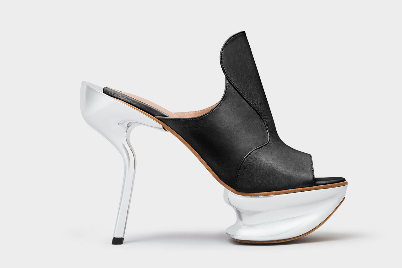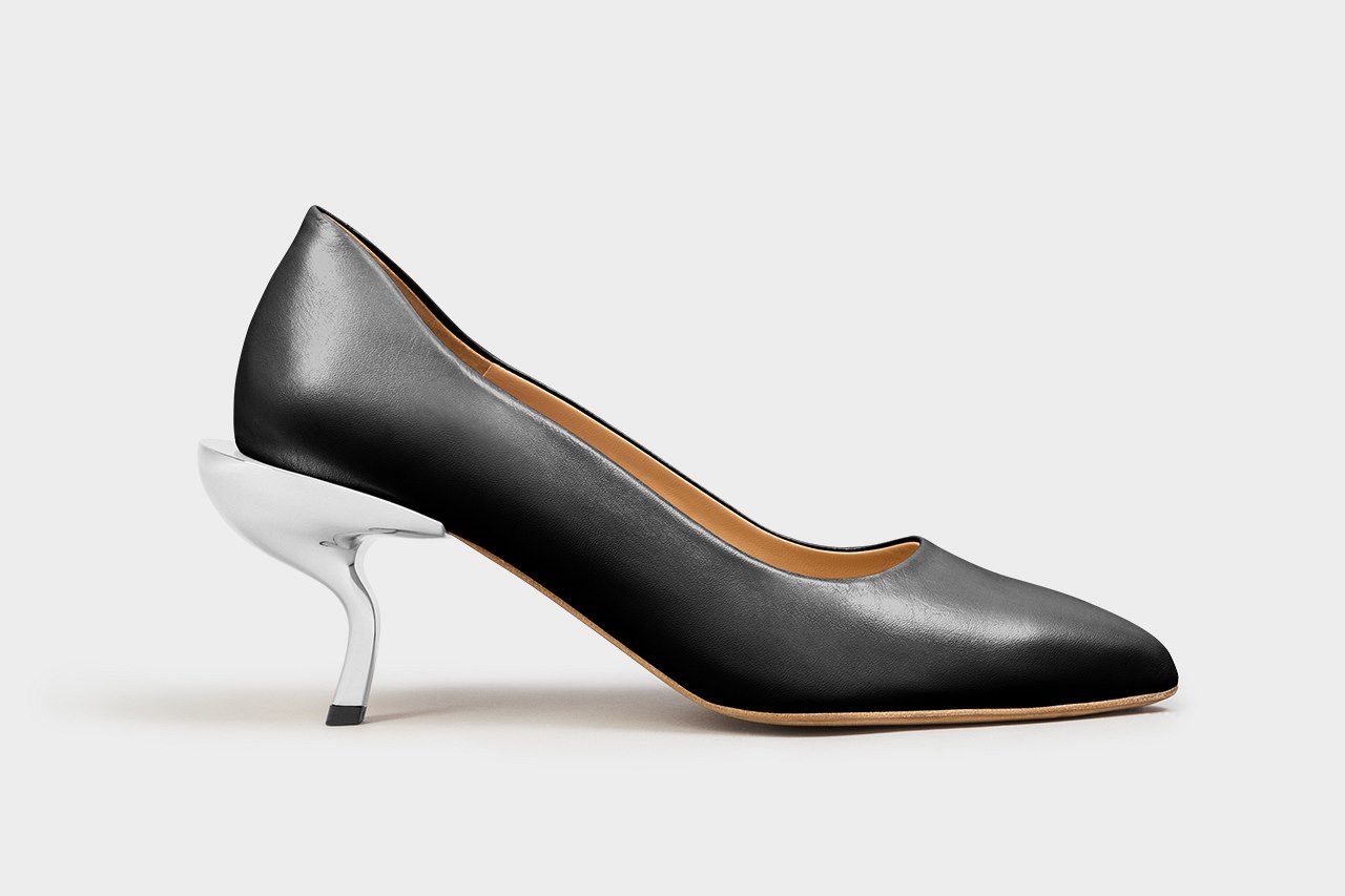 Zepředu botky připomínají jednoduché konvenční černé lodičky, z boku už si nelze nevšimnout nevšedního zpracování podpatku.