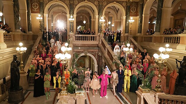 Svým charakteristickým leskem a třpytem tedy návrhář opravdu nešetřil a z úst mých spolustojících se ozývala převážně slova jako nádherný, překrásný, úchvatný. Škoda, že modelky nezavítaly i do horních pater muzea, abychom si kolekci zblízka prohlédli i my novináři. Návrhář svými modely ozdobil převážně známé tváře včetně Simony Krainové, Ivy Kubelkové a její dcery Natálie Jiráskové či Diany Kobzanové.