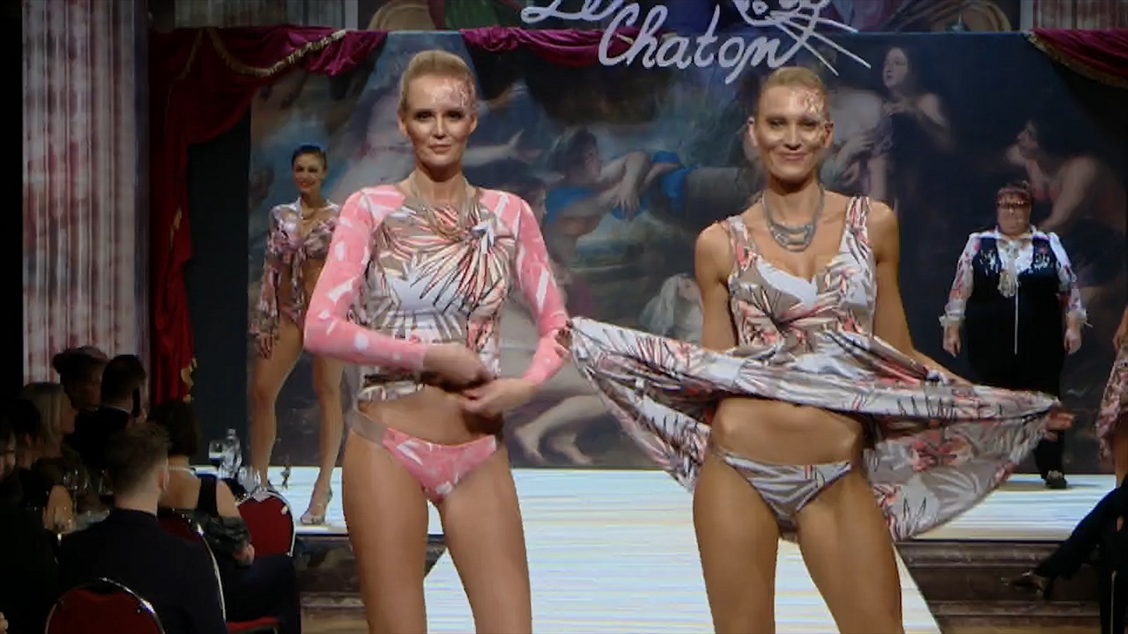 Diváci se mohli kochat oboustrannými květinovými vzory, které najdeme na bikinách i jednodílných plavkách, ale i romantickým zdobným stylem, například červenobílými kostkovanými plavkami doplněnými bolerkem a kraťasy.