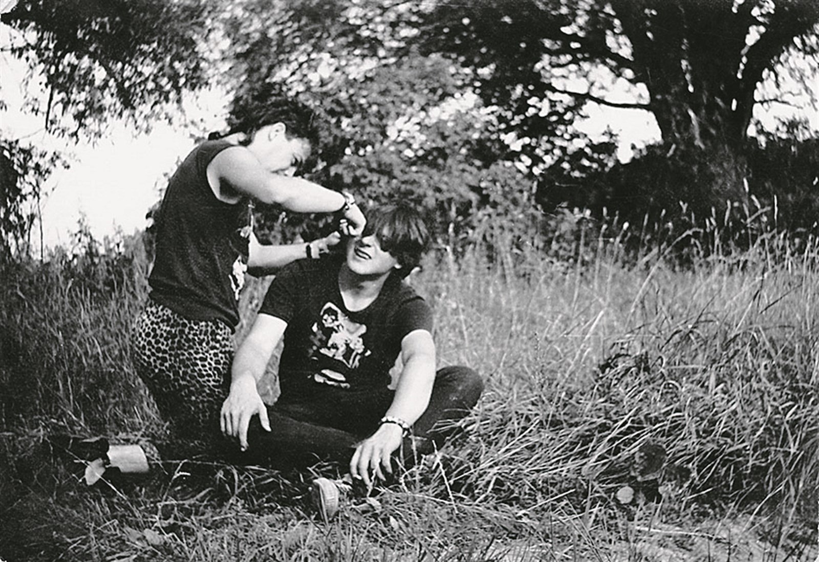 Výroba punkového účesu v přírodě v roce 1986 (archiv Bobíka, z knihy Kmeny 0)