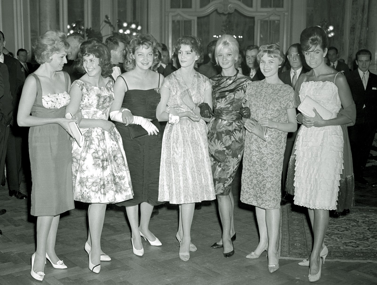 Pracné účesy se nenosily jen na společenské události, ale i do práce nebo do školy. Na snímku účastnice Mezinárodního filmového festivalu v Karlových Varech v roce 1960.