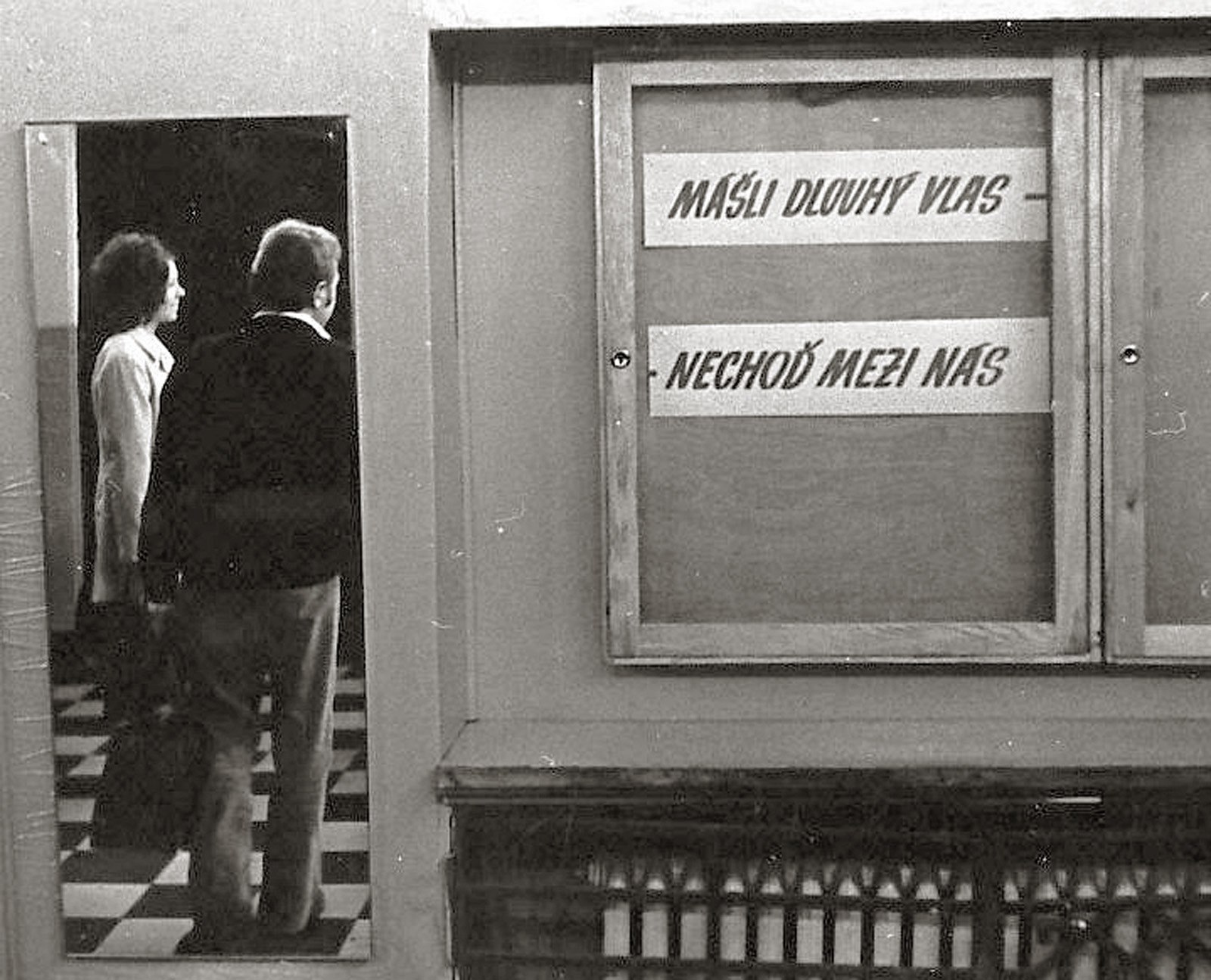 Slogan proti máničkám, kterému se dnes můžeme smát, byl brán v letech normalizace velice vážně. Snímek z roku 1973 je z libereckých kolejí VŠST.