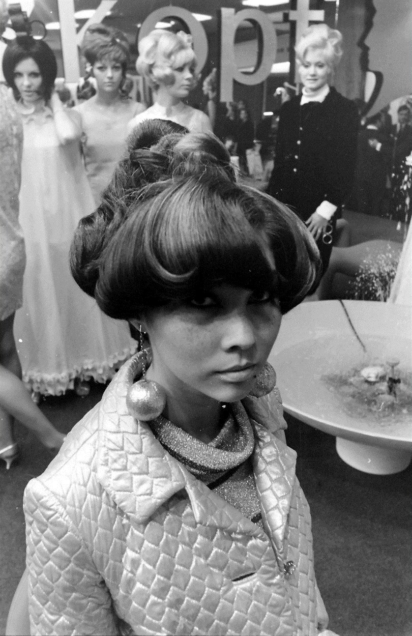 Pro šedesátá léta byly typické vysoce natupírované účesy a výrazné líčení očí.