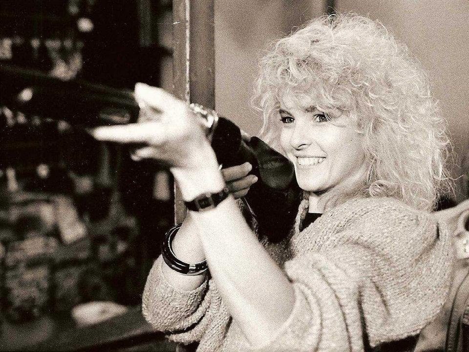 Dara Rolins s trvalou na hlavě ve filmu Juraje Jakubiska Téměř růžový příběh (1990)
